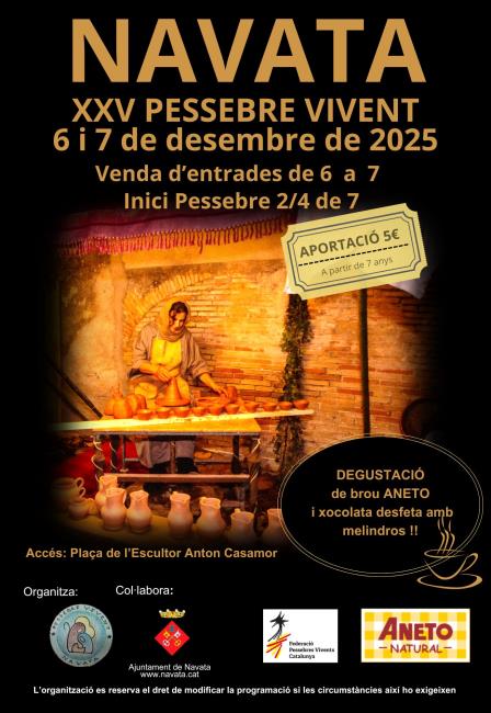 El Pessebre Vivent de Navata es representa des del 1997. Aquest any mantindrem les ubicacions de les escenes amb algunes escenes noves i noves incorporacions. La representació es realitzarà en els baixos d'una antiga casa comtal al costat de la muralla del segle XIV i en els seus jardins. Com sempre s'escenifica en format estàtic i música enregistrada i en directe.