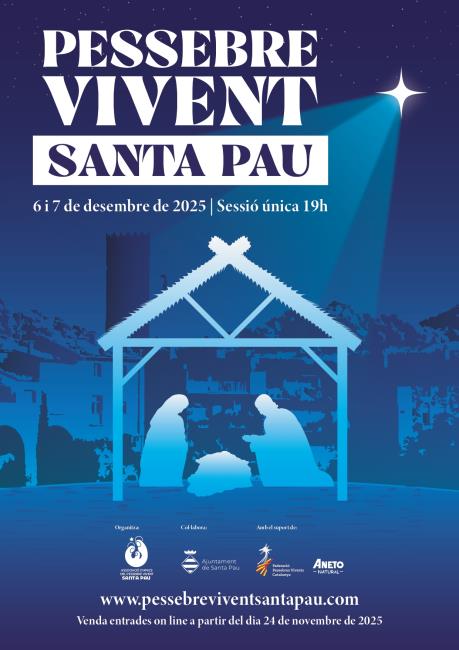 Afavorit per l’entorn històric del poble medieval de Santa Pau, el Pessebre Vivent és una representació teatral estàtica, estructurada en dues parts.