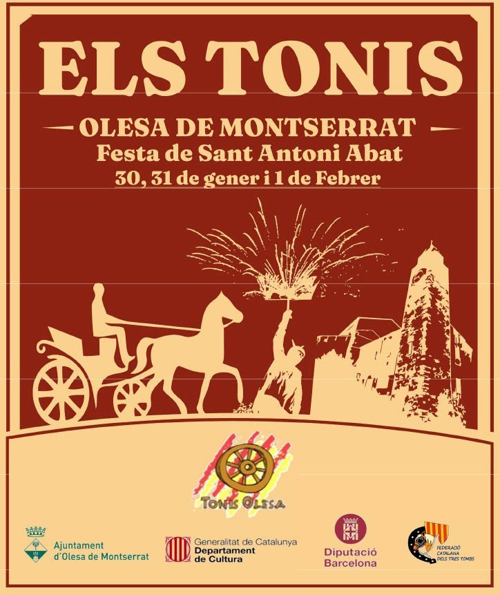 A més de totes les activitats previstes a partir del 17 de gener que ens preparen l’Associació Tonis Olesa, el proper diumenge 1 de febrer, Olesa celebra la Festa de Sant Antoni Abat 2026 amb un programa complet d’activitats per a tota la família. Durant tot el dia, a la Plaça de Catalunya, es podrà gaudir del mercat medieval (10-21 h) i de la Fira del vi i del vermut (11-15 h).