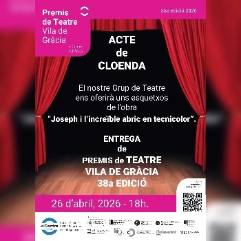 Cerimònia de cloenda i lliurament de premis dels Premis de Teatre Vila de Gràcia 2026, 38a edició
